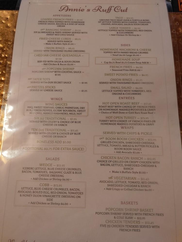 The menu at Annie's Ruff Cut features a great variety of dishes to satisfy diverse tastes. Options include burgers, sandwiches, and hearty entrees. Popular items like the Ruff Cut Roast Beef and Chicken Bacon Ranch wrap showcase the local flavors. Fried cheese curds and loaded fries serve as perfect appetizers.